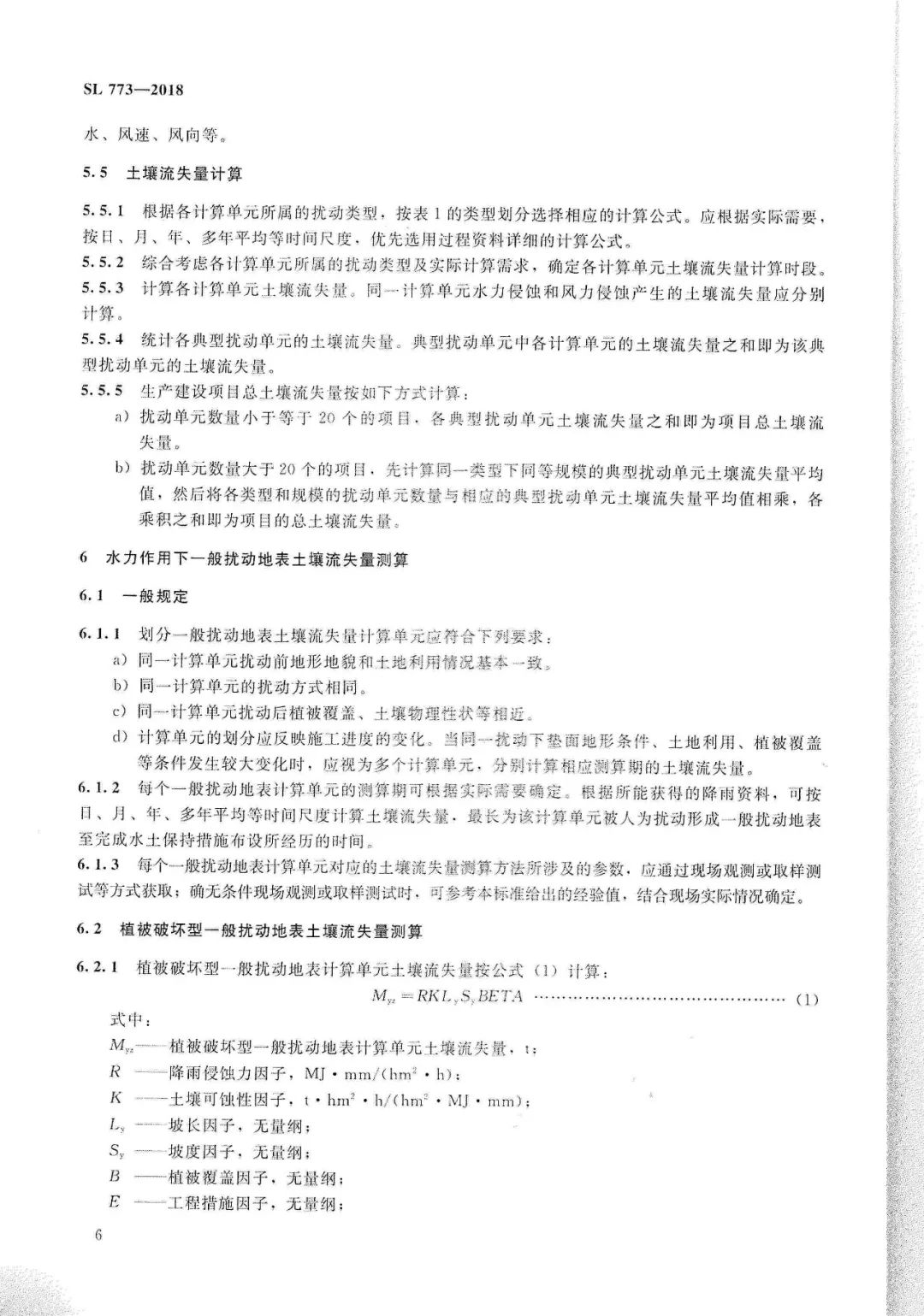 《生产建设项目土壤流失量测算导则》(SL773-2018)