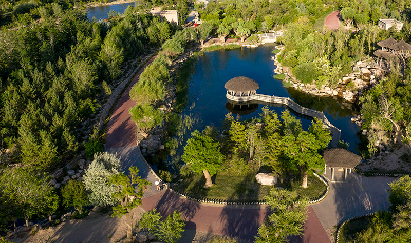 ![]() 坐落在宁夏银川市贺兰山脚下的贺兰山运动休闲公园(2021年5月27日摄,无人机照片)。这里曾是一片砂石采矿塌陷区,当地通过植被景观再造、水系建设、现代管网铺建等手段,重新利用废石、废坑及各类废弃建筑材料,把这里变成一座免费开放的主题公园。新华社记者 冯开华 摄 |